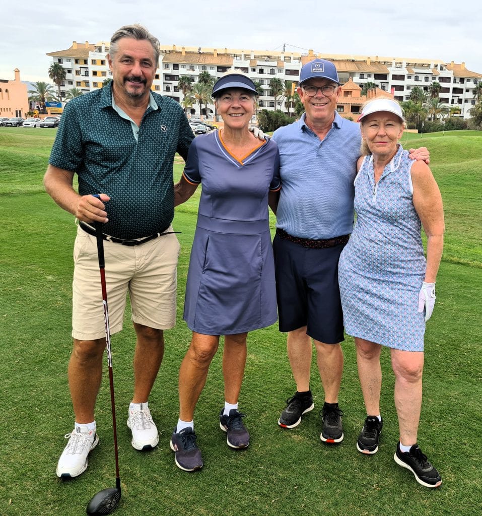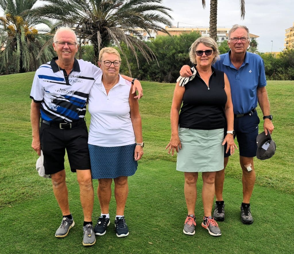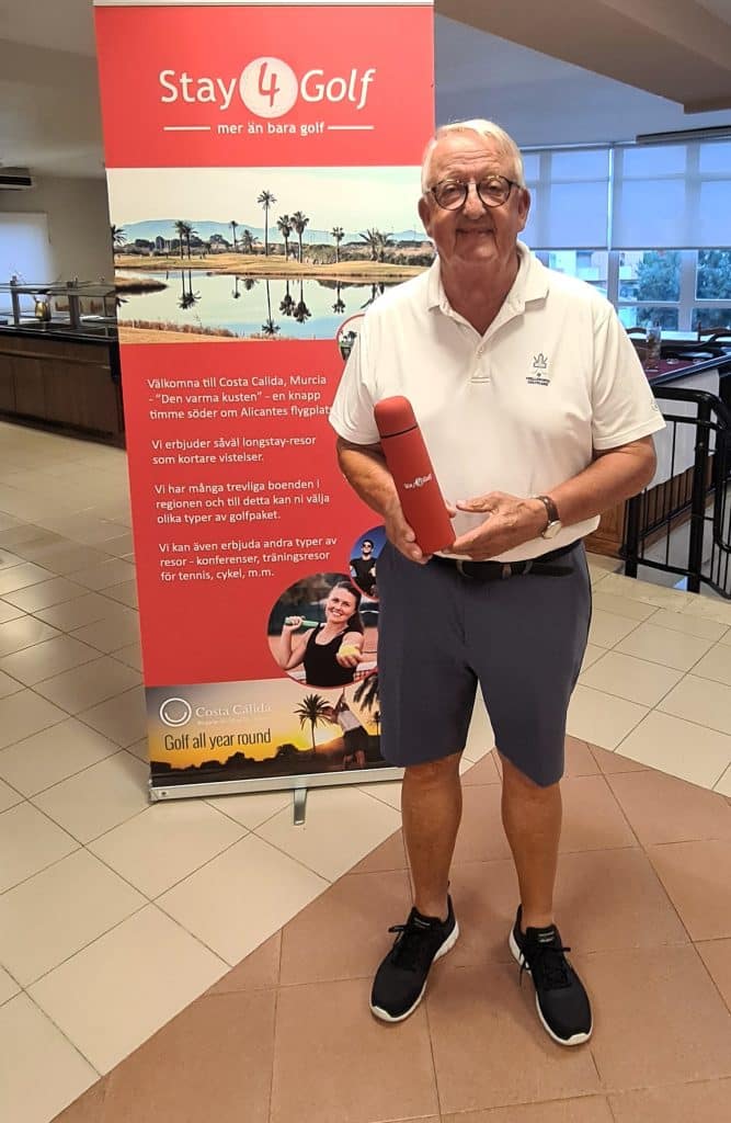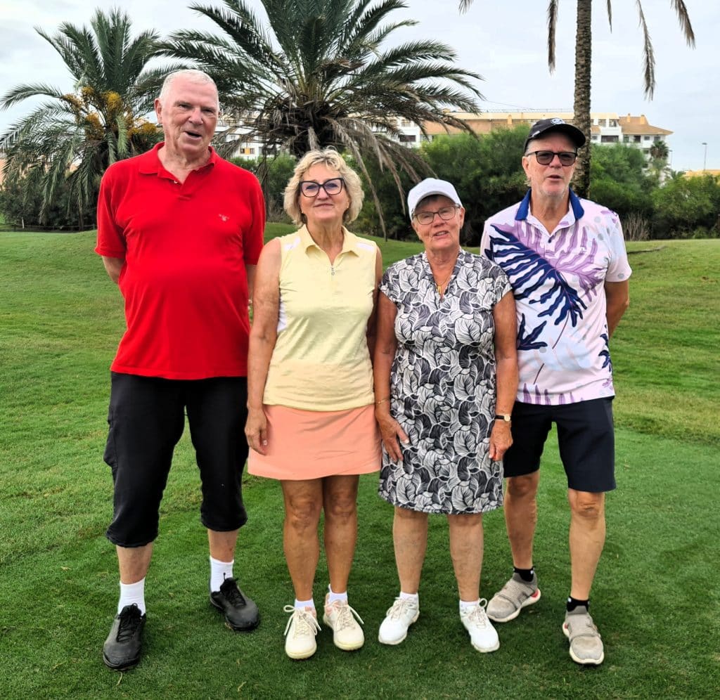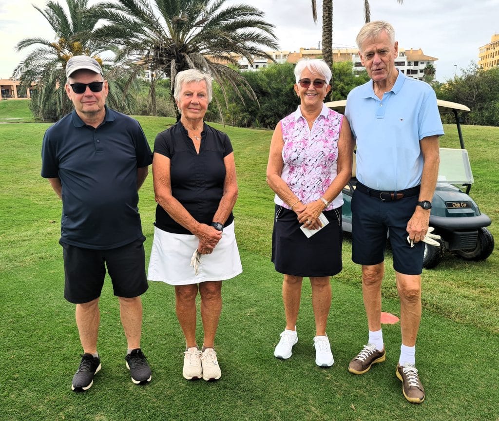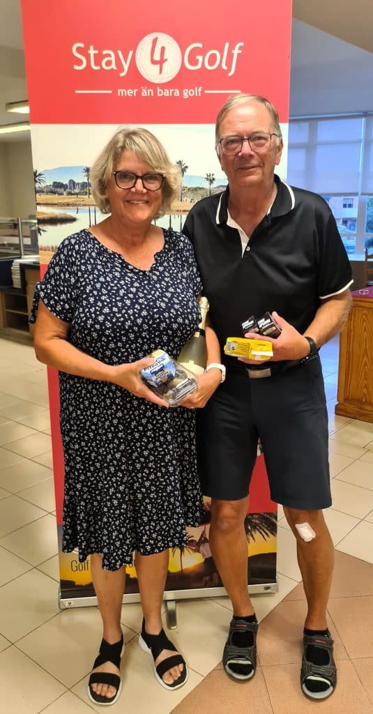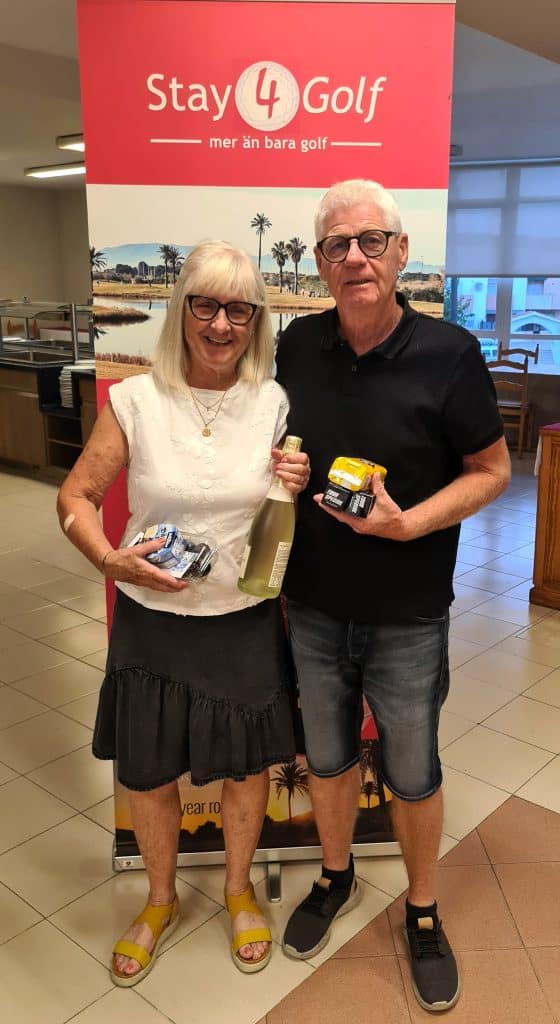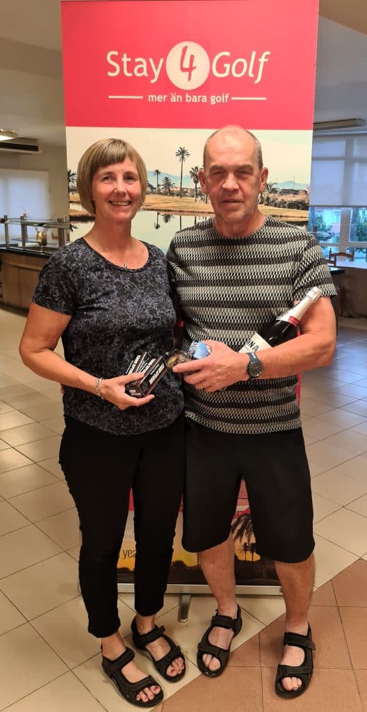På kvällens prisutdelning på Destino de Sol hyllar vi vinnarna av Onsdagen partävling Irish Greensome. Bäst i denna tävling var Lise-Lotte och Michael Lenberg som fick 42 poäng. Grattis till er!
