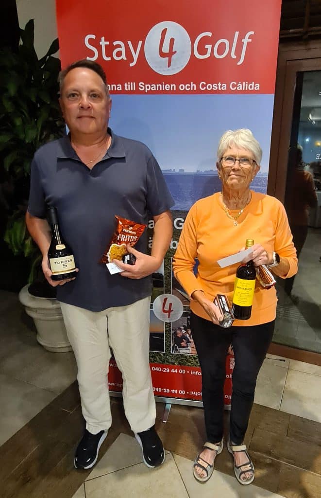 Strax utanför pallen kom Pirjo Hulkkonen med 26 p och Arne Brink med 26 p.Femma blev Carina Persson med 26 p och Jan Hermansson med 25 p.