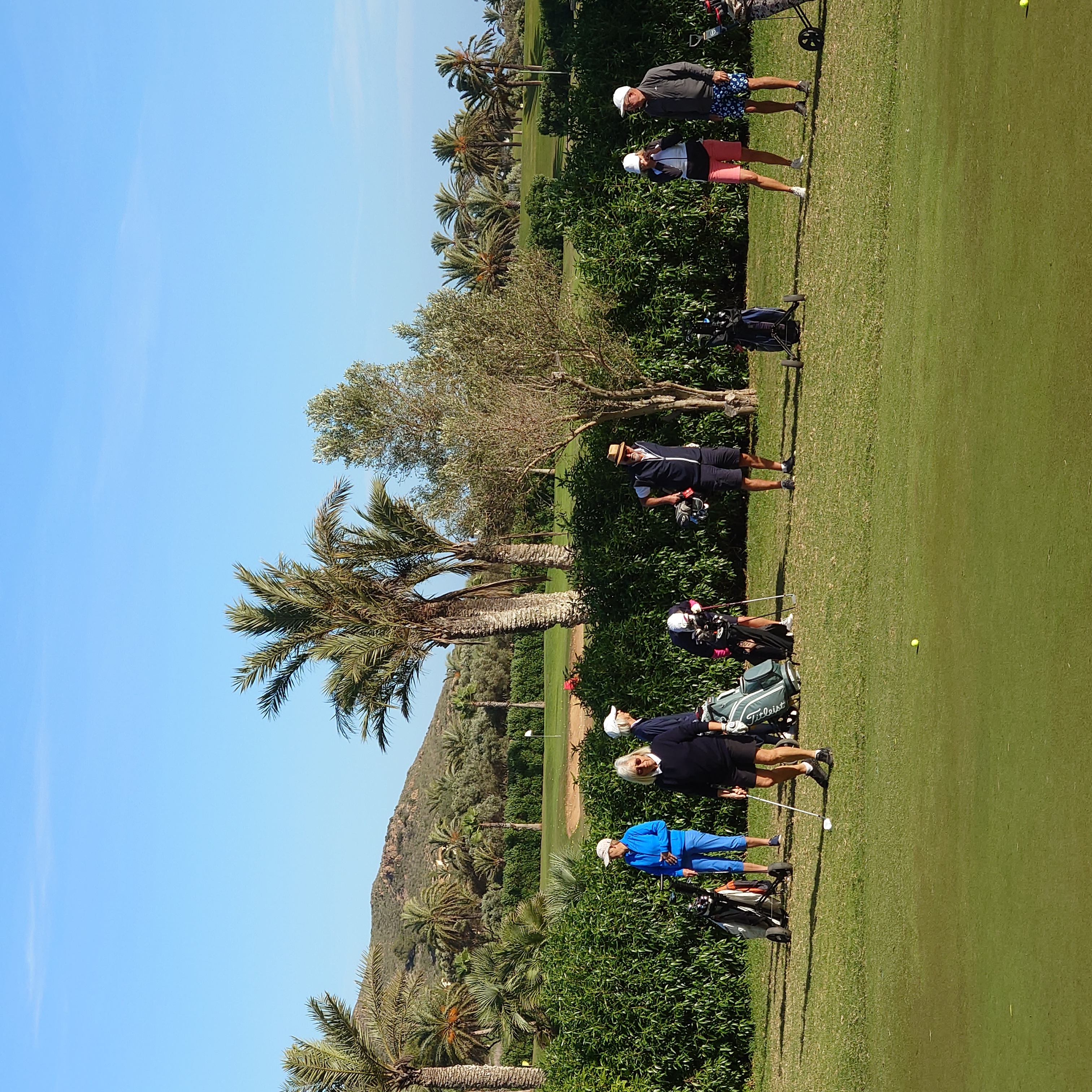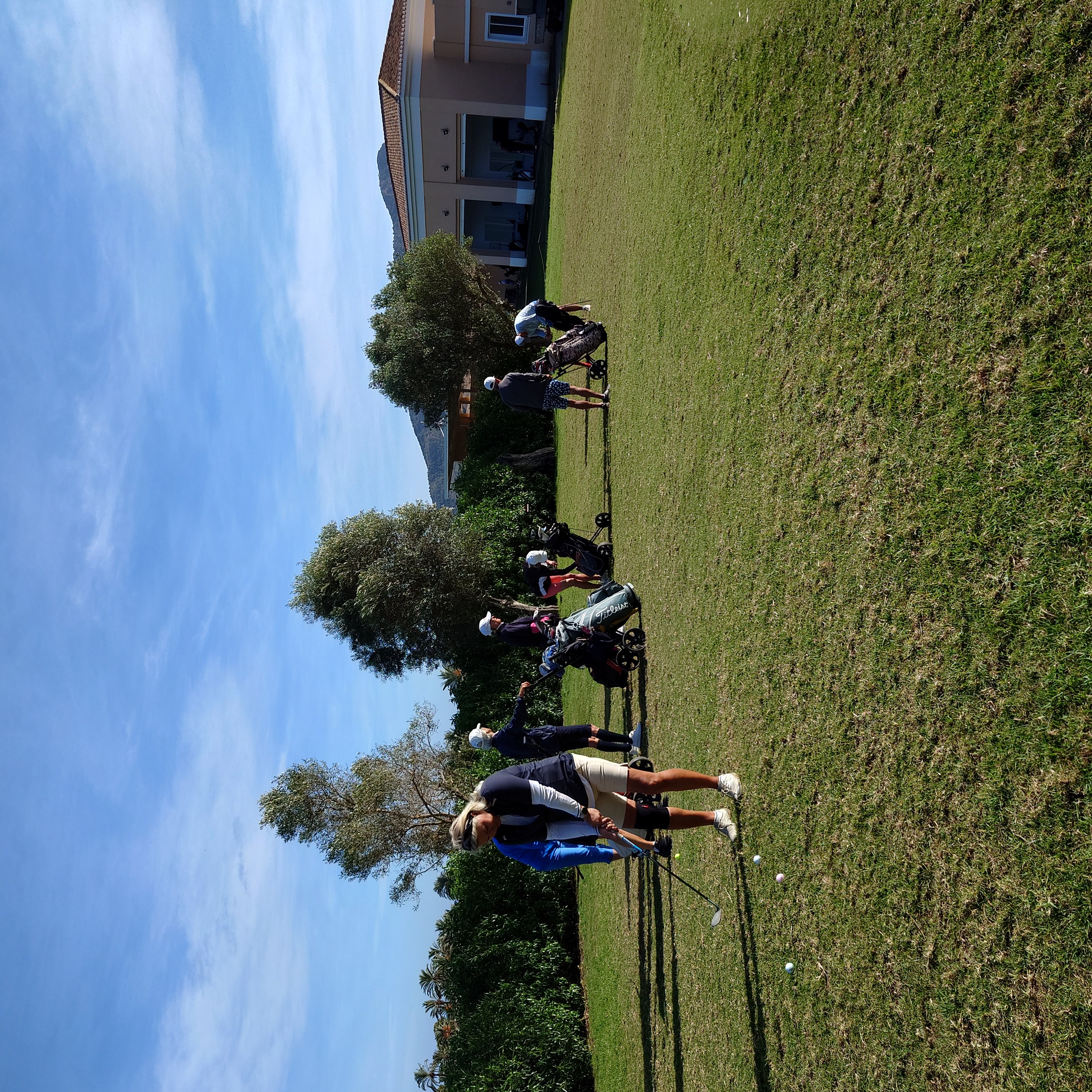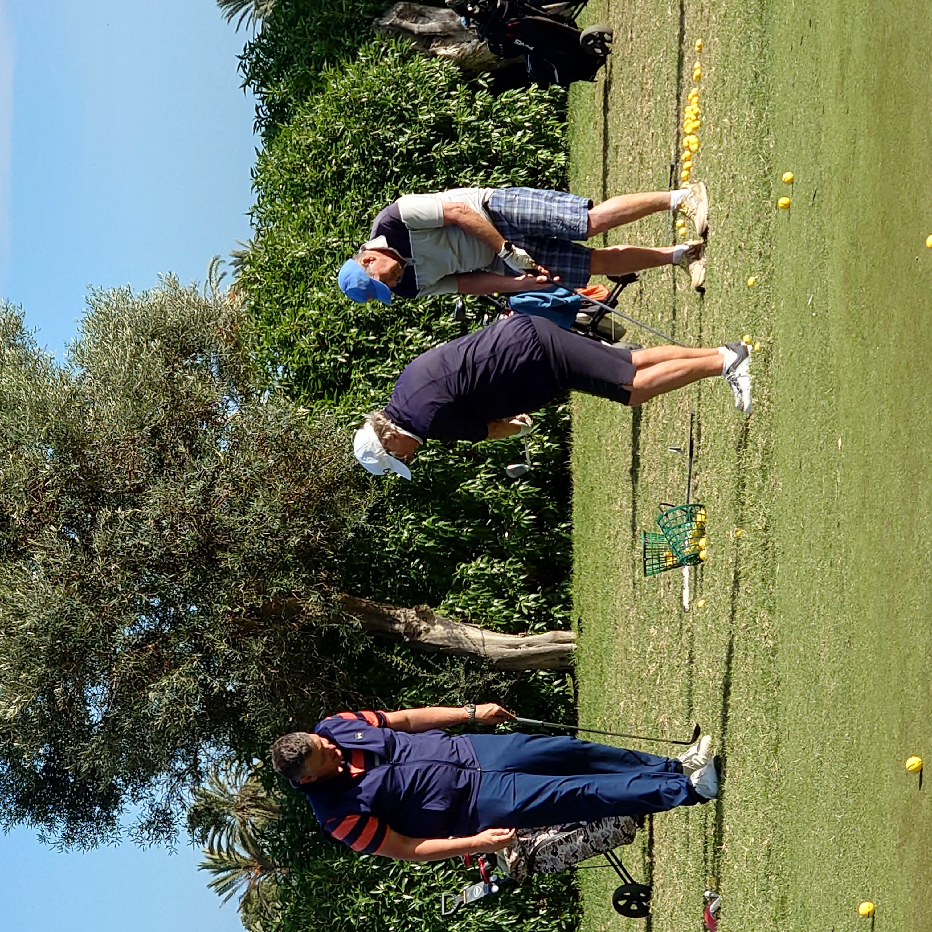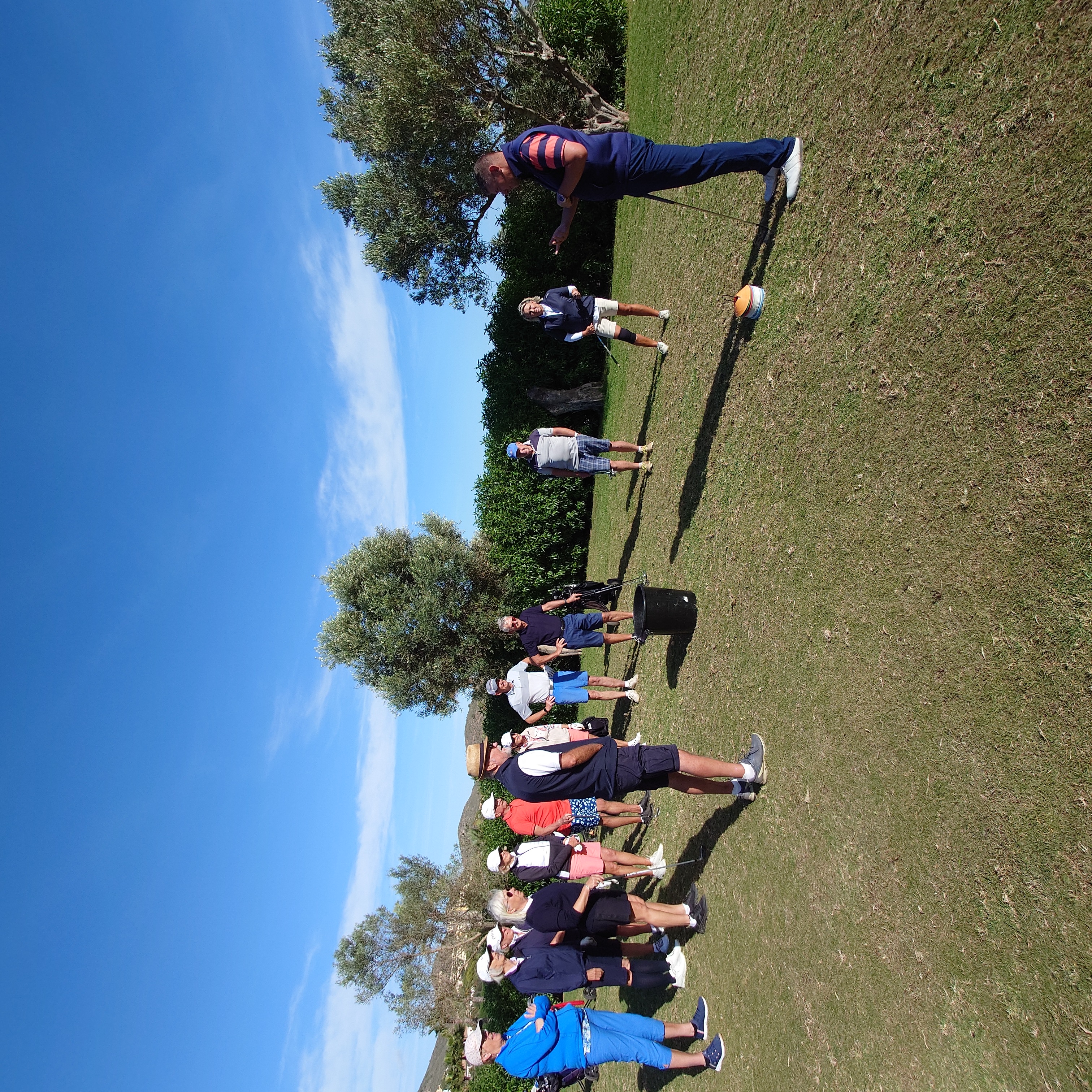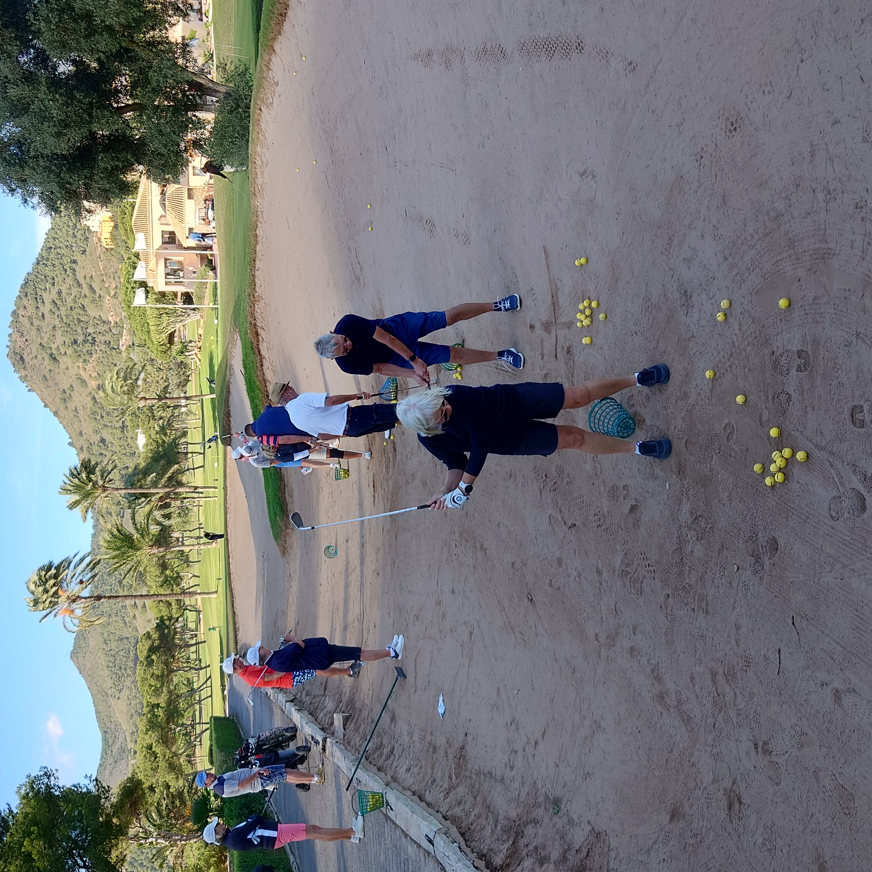 Uppställning runt green med bästa närspels vapnet, Ian gick runt och instruerande och filmade de flesta som fick se sig själv svinga. Ian ”lovade”(nästan) en hcp sänkning med 5 slag (för hel gruppen om vi följer hans råd). Det blev även lite bunker duvning.