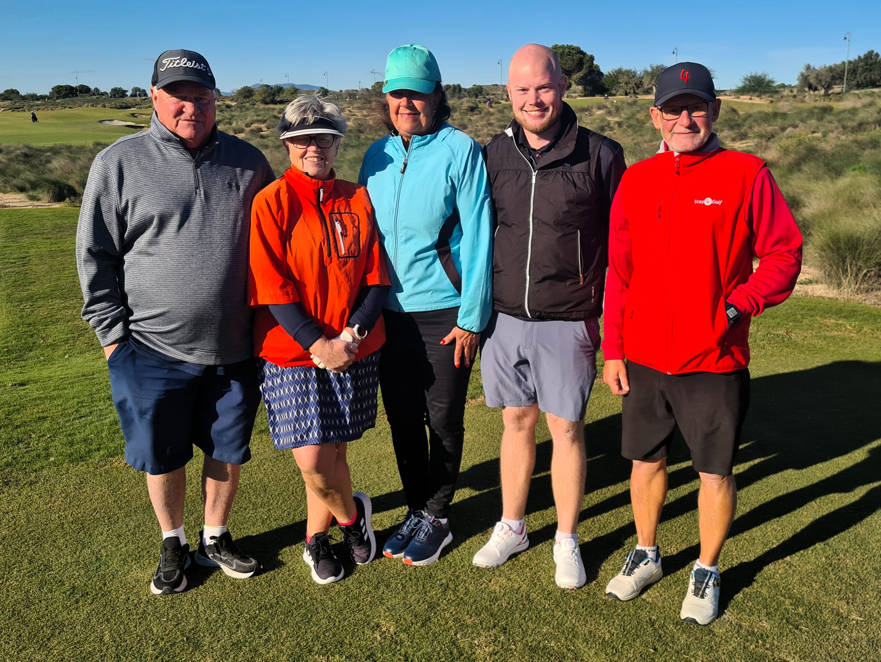 Några stycken hamnade på green på hål nr 5 och i den svåra vinden som var, hamnade Stefan Andersson 10 m från flaggan.