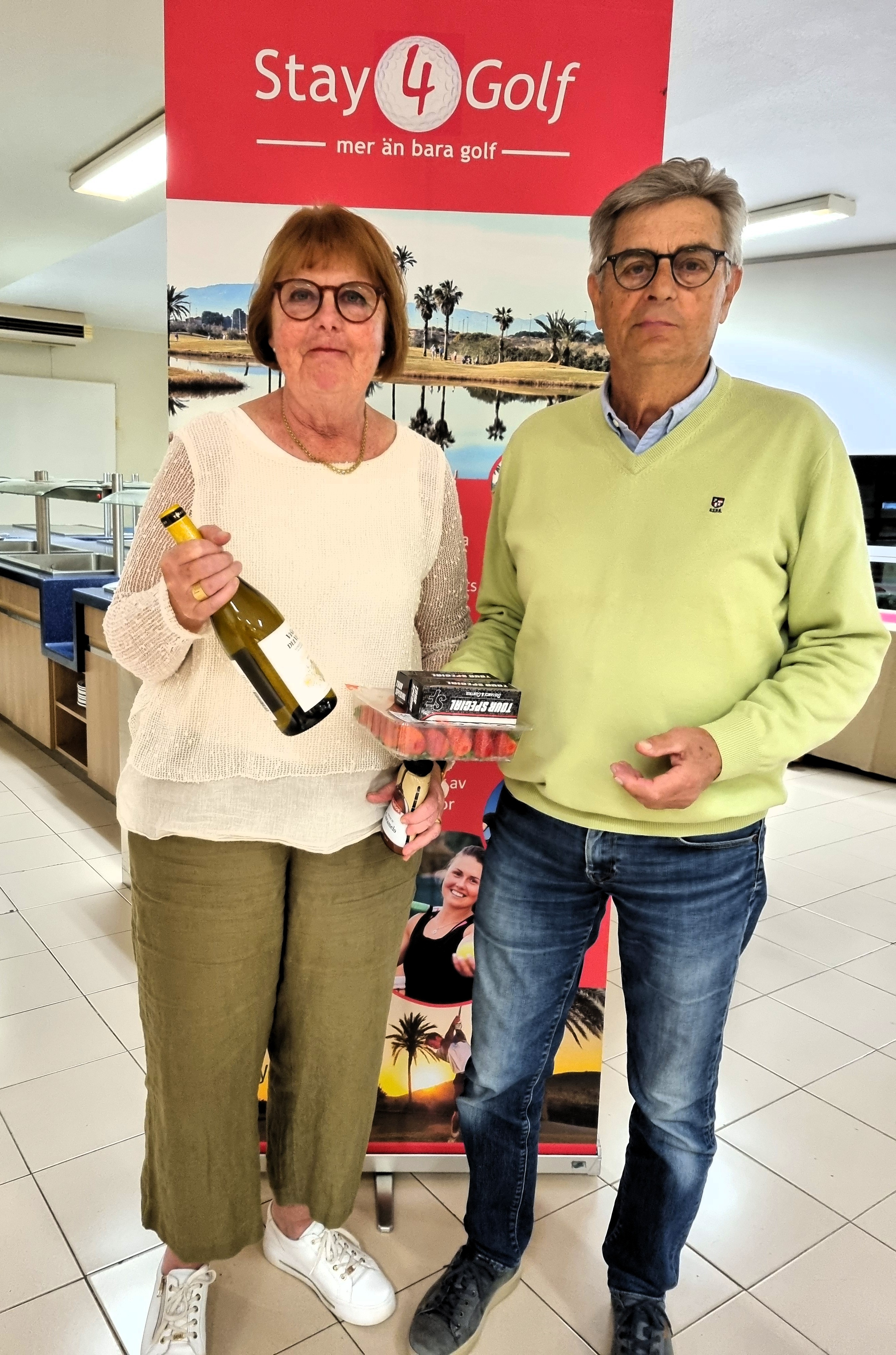 Härnäst kom Barbro Österlund och Karl-Gunnar Lundström med 38 p och knep andra platsen. Tredje platsen fick Pirjo Hulkkonen och Wolfgang Scheiber också med 38 p men med ett högre spelhcp.