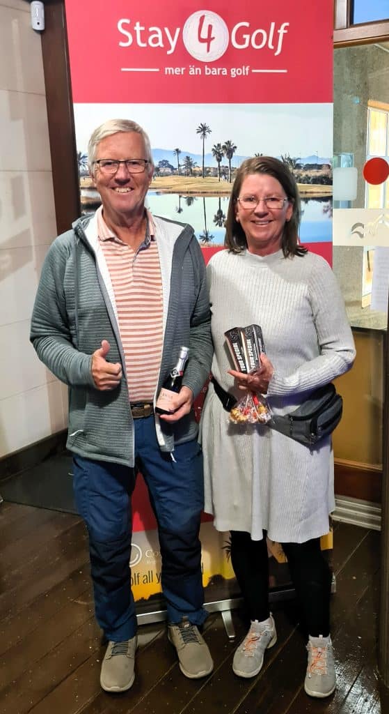 Bäst i vinden var stay4golfs Kerstin och Peter Nilsson med 42 p. Då går automatiskt första priset till Pirjo Hulkkonen och Wolfgang Scheiber med 39 p.