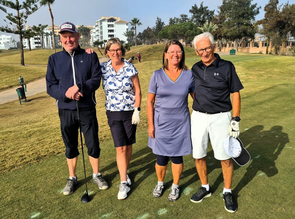 Vi har ännu en dag med fantastiskt golfväder. Knappt en bris som rör sig i palmerna. En spännande spelform där man inte vet vem som ska paras ihop med vem.