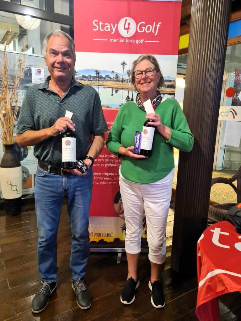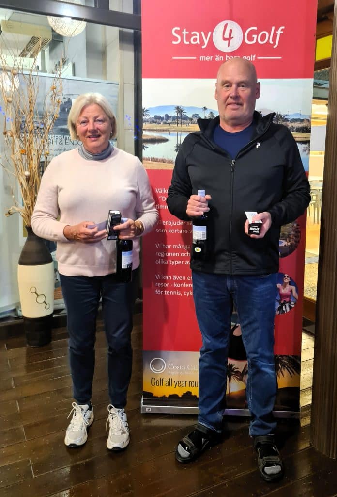 Sen kom Kerstin och Peter Nilsson (stay4Golf) på 45 p så där gick andra priset till Birgitta Brunnvall och Wolfgang Scheiber också 45 p men med ett högre spelhcp.