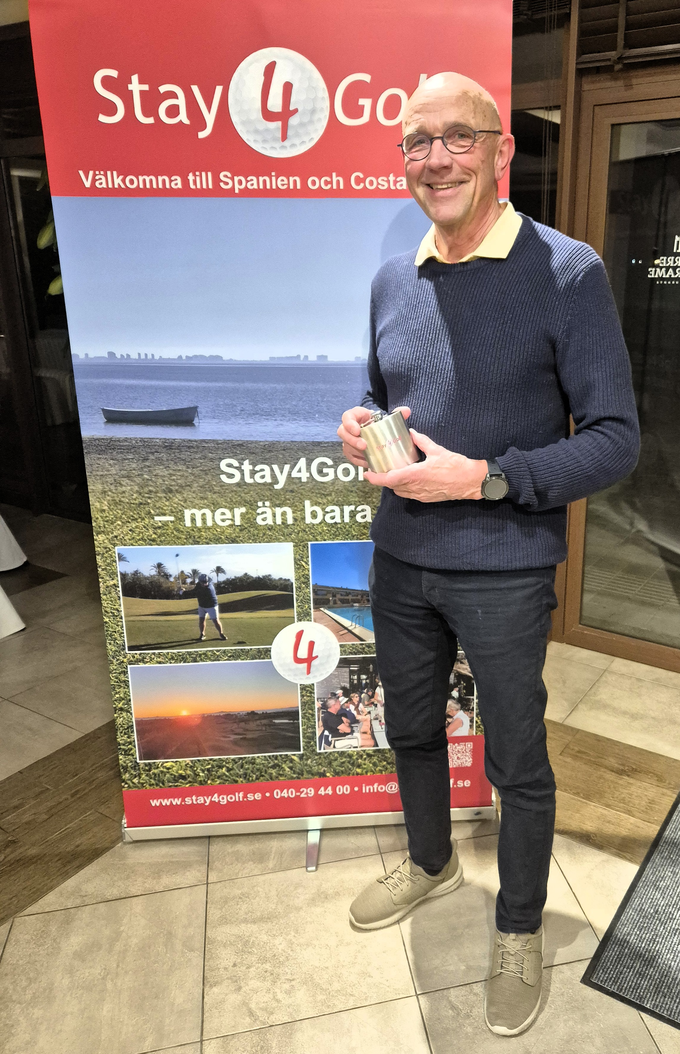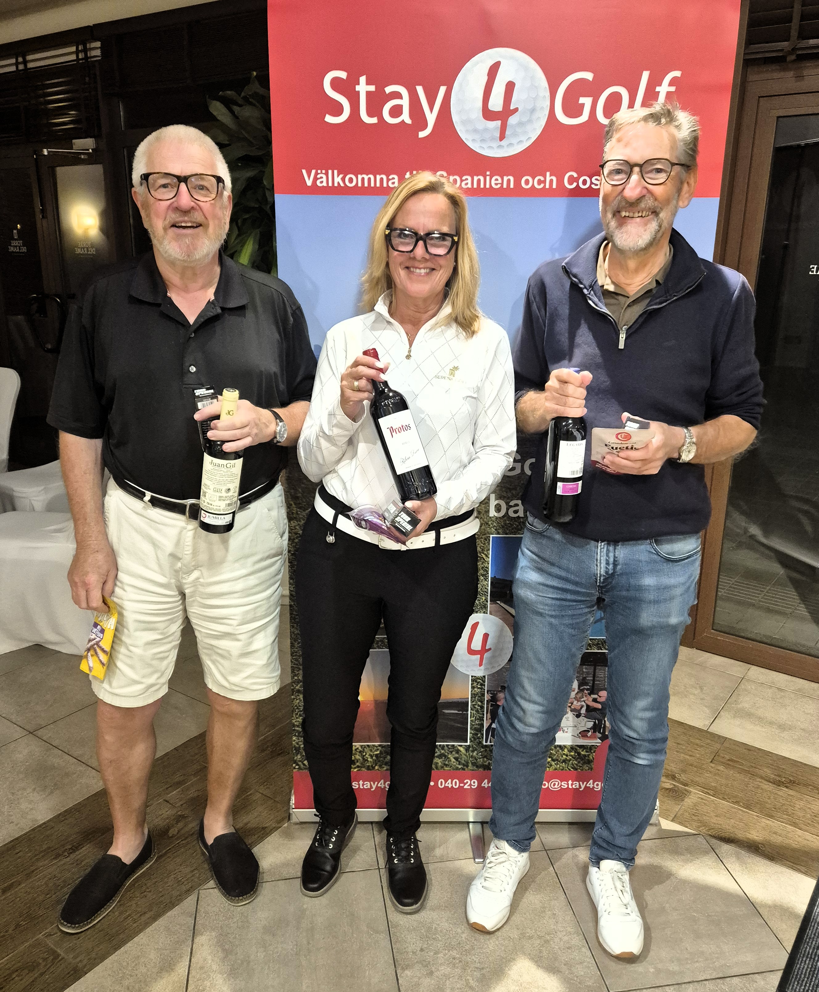 Strax utanför pallen kom stay4golfs egen Kerstin Nilsson med 73 slag.” Hon dricker inte vin” så fjärde platsen gick till Owe Frögeli med 74 slag. Han var inte närvarande så priset gick till Olaug Bye, 74 slag.