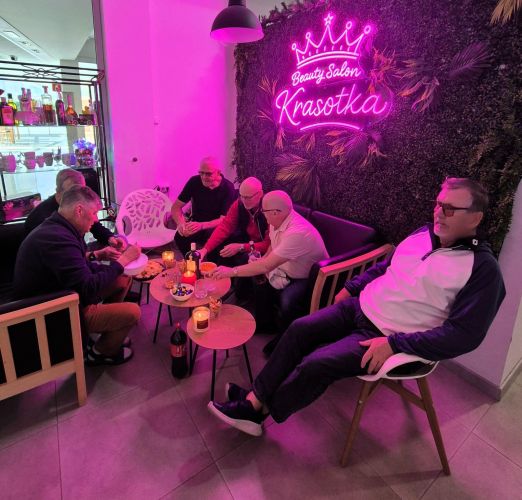 Det var ett gäng Gentlemen som begav sig till Krasotka beauty Salon i Torreveija. Chaufför var stay4golfs Peter och väl där kunde herrarna få pedikyr med benmassage.