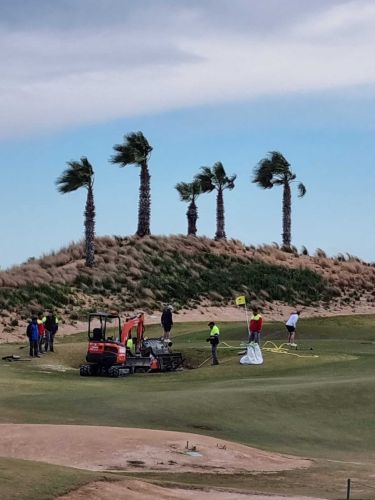 Det som går emot oss idag är de starka vindarna. På medvindshålen rullar det fantastiskt långt, lite värre på de hålen som vi har motvind…