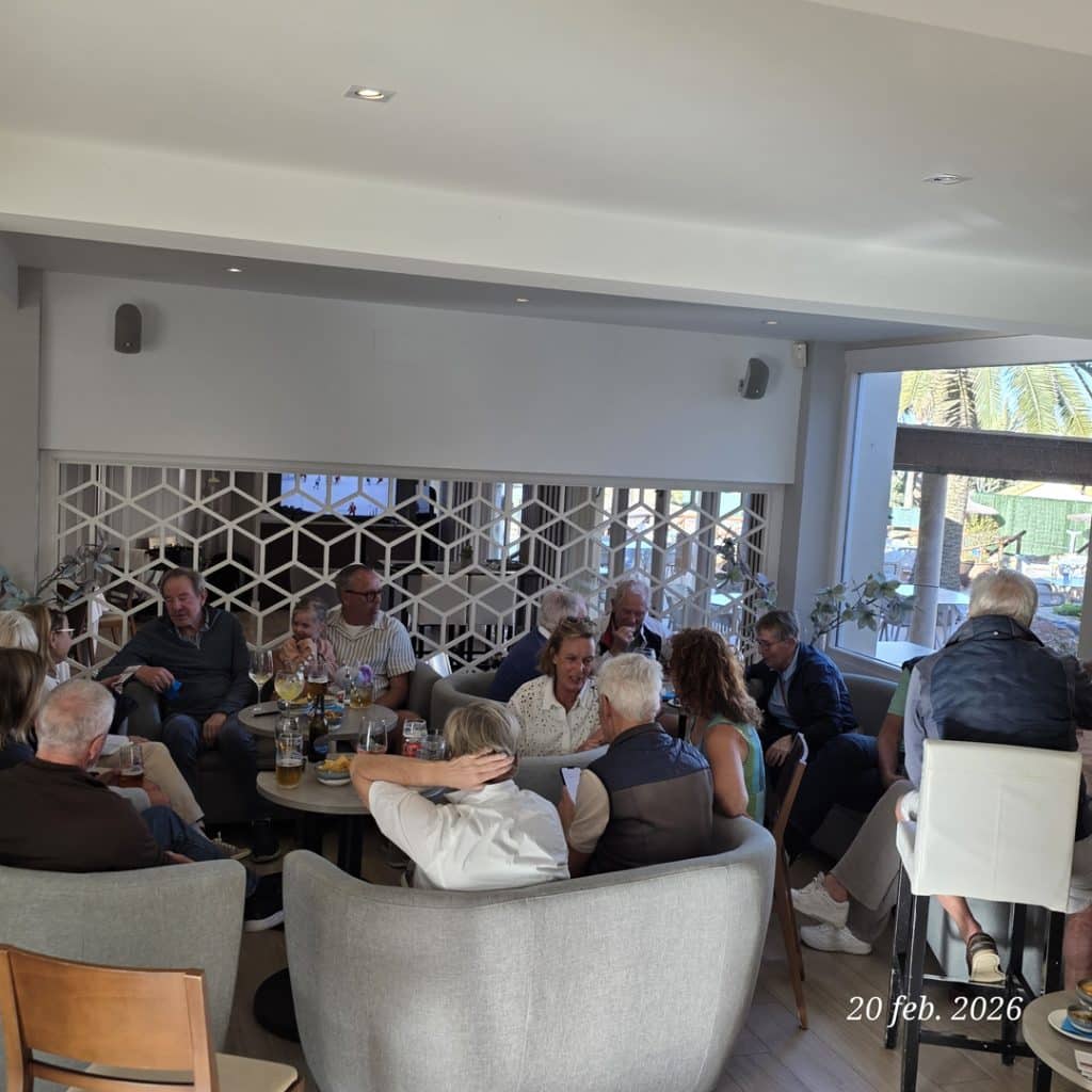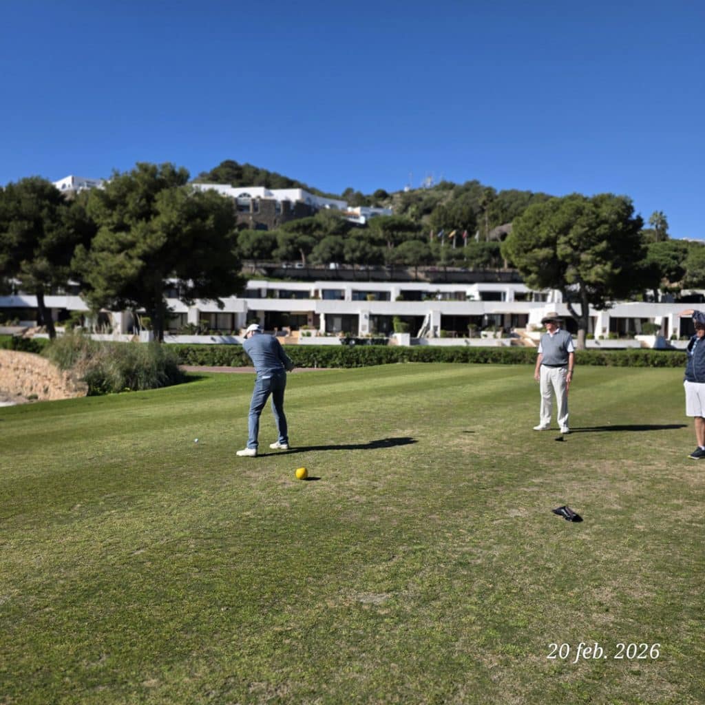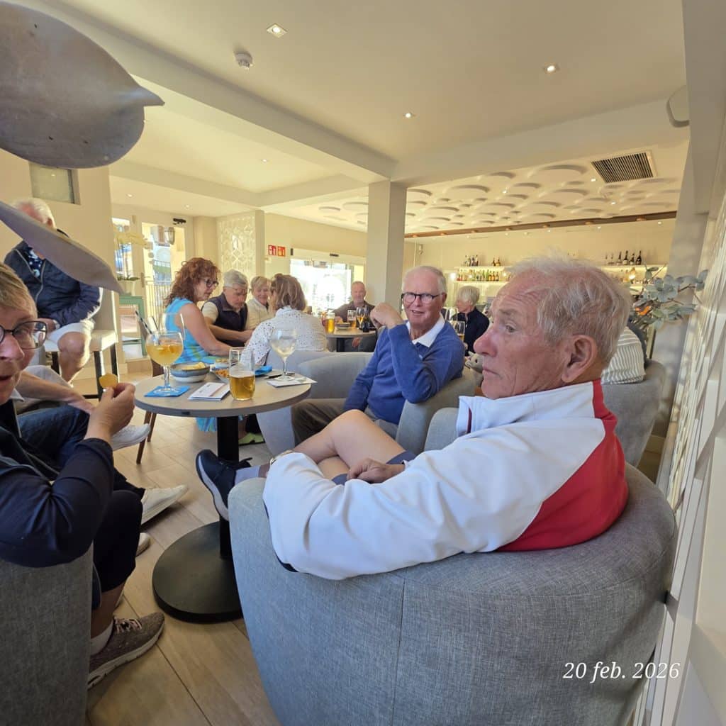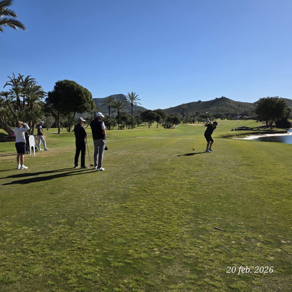 För efter rundan var både trötta ben och ev. snedträffar som bortblåsta. Vi samlades på La Solana på La Quinta för att avslöja den “dolda parten”, räkna ihop dagens poäng och – inte minst – försöka återställa vätskebalansen efter 4,5 timma på banan