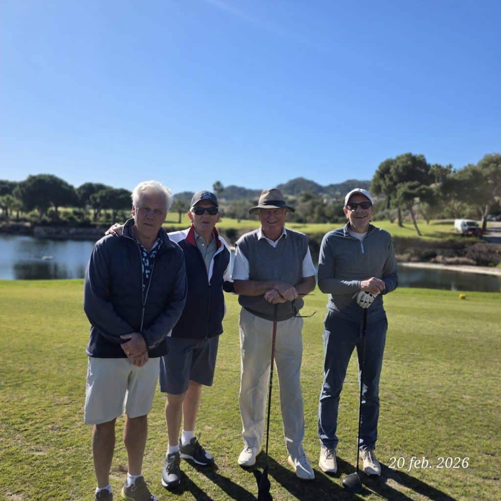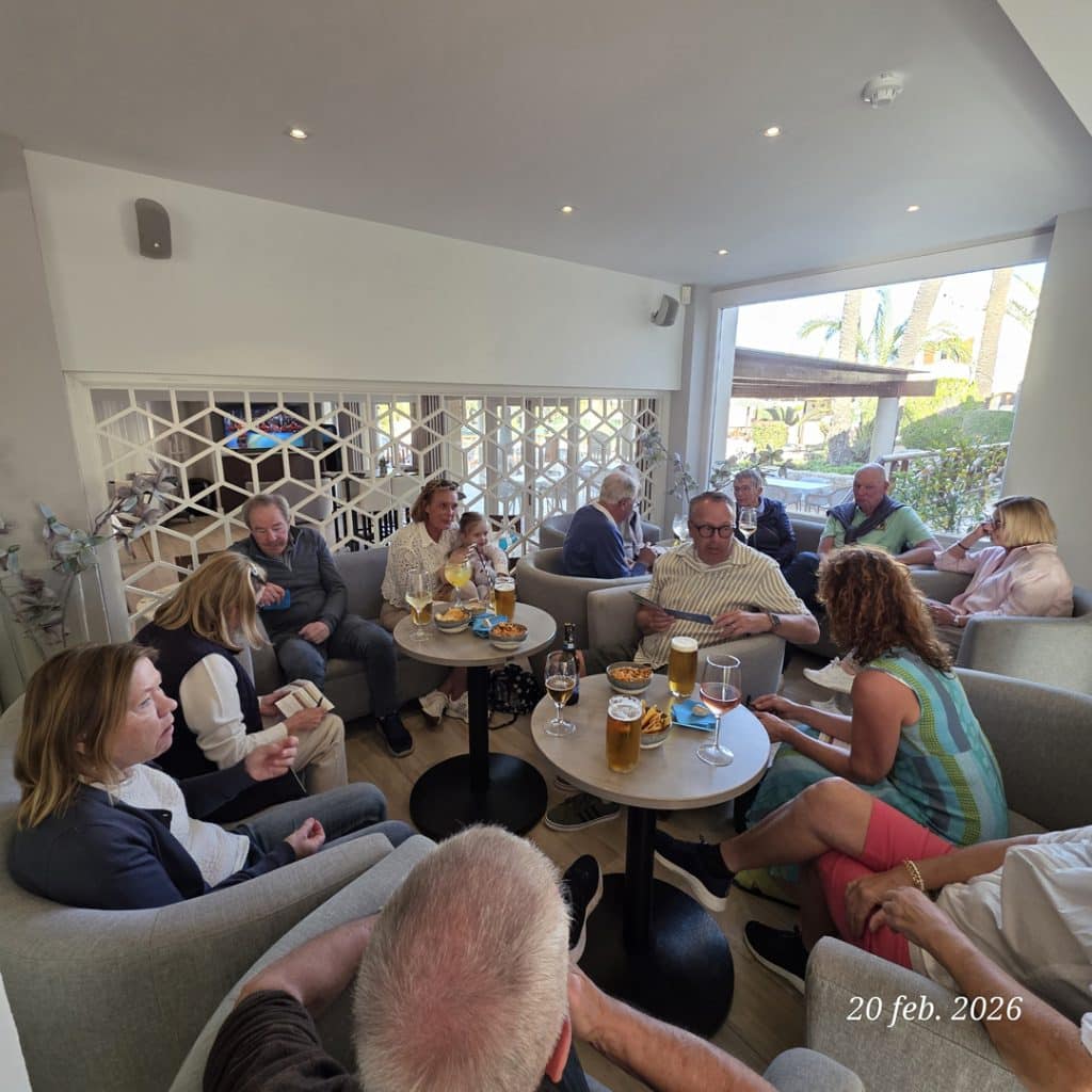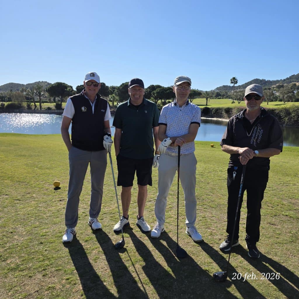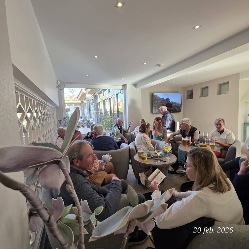 För efter rundan var både trötta ben och ev. snedträffar som bortblåsta. Vi samlades på La Solana på La Quinta för att avslöja den “dolda parten”, räkna ihop dagens poäng och – inte minst – försöka återställa vätskebalansen efter 4,5 timma på banan