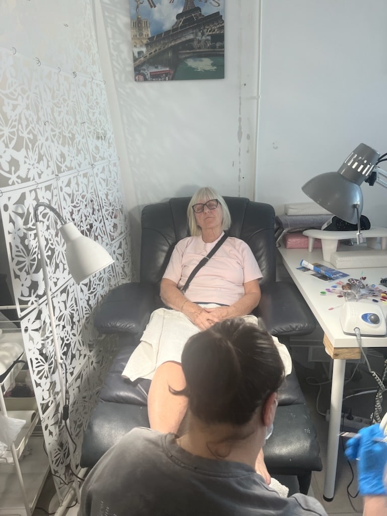 En solig dag i mars åkte ett gäng damer till skönhetssalongen i Torreveija. Där finns ett antal behandlingar som man kan göra, bl.a. pedikyr, manikyr, massage och ansiktsbehandling.