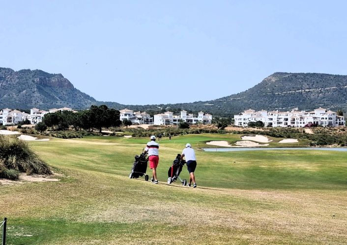 Vi har fina förutsättningar för ett bra parspel, bästboll poängbpgey, på Hacienda Riquelme denna soliga fredag.