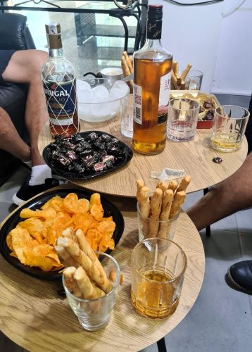 Oron stillades av ett framdukat bord med både Rom, Whiskey, choklad och chips. Strax var diskussionerna igång om vem som hade beställt vilken behandling och varför.