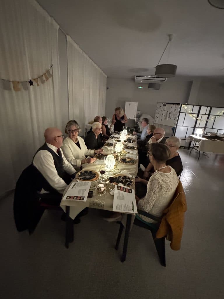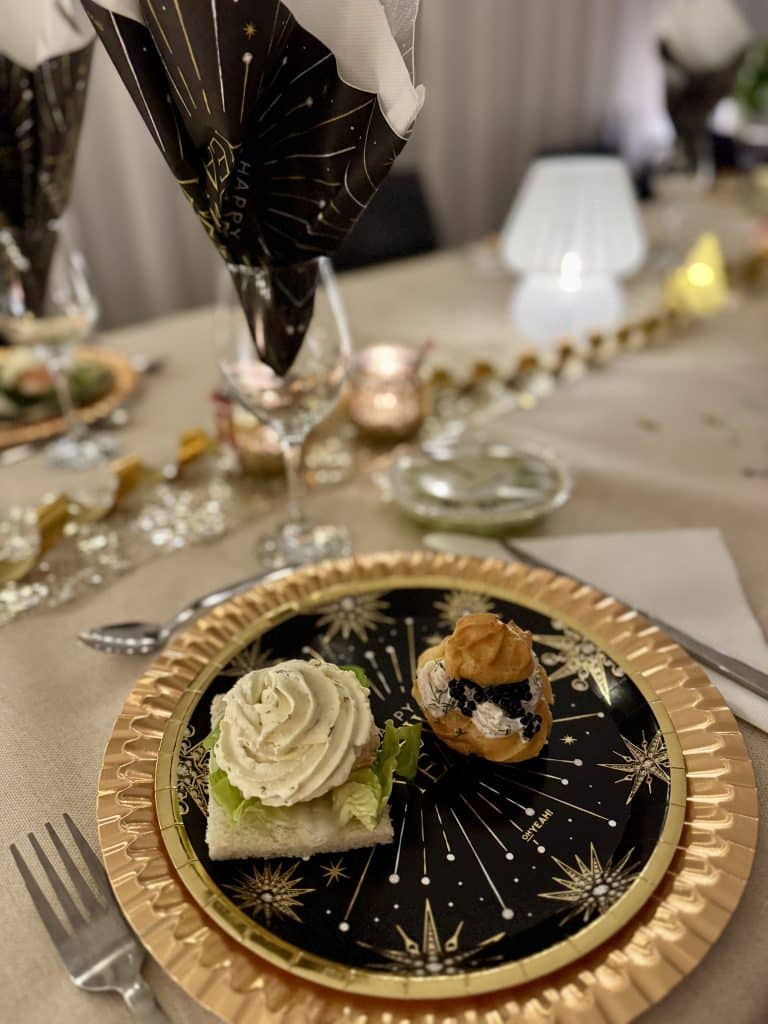 Det var åter dags för vår nyårsfest. Många hade spelat ett varv på förmiddagen som uppvärmning till kvällens begivenheter. Vi började förstås med välkomstbubbel och lite mingel innan det var dags att sätta sig till bords.
