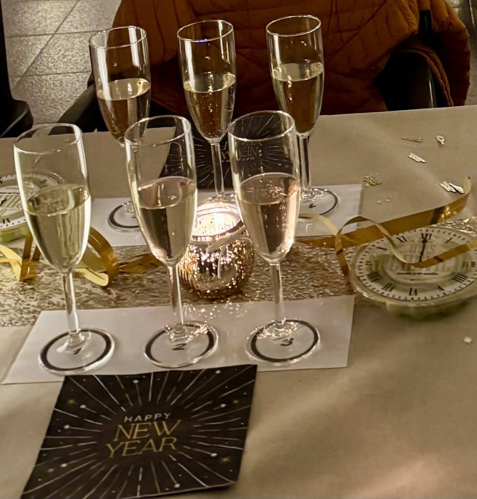 Så småningom kom vi fram till nyårsslaget och de obligatoriska vindruvorna och den goda cavan. Många karamar blev det och nu blickar vi fram mot ett härligt 2026.