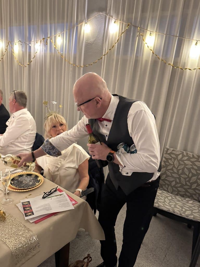 Efter en fantastik 3 rätters middag var det dags för lite lekar. Vi var sysselsatta med allt från frågesport till bubbelprovning och tokiga lekar. Många härliga skratt!
